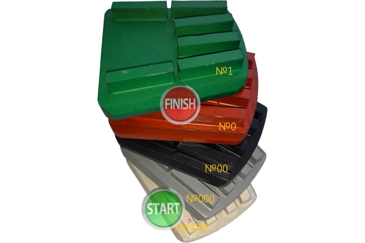 Ресурс – 3500 кв/м при снятии 1 мм обрабатываемой поверхности. Общая рекомендация при выборе зернистости - чем крупнее алмаз, тем ВЫШЕ производительность и тем НИЖЕ ресурс- соблюдайте оптимальный баланс. Доступные для заказа зернистости по увеличению размера алмаза -1, 0, 00, 000, 0000