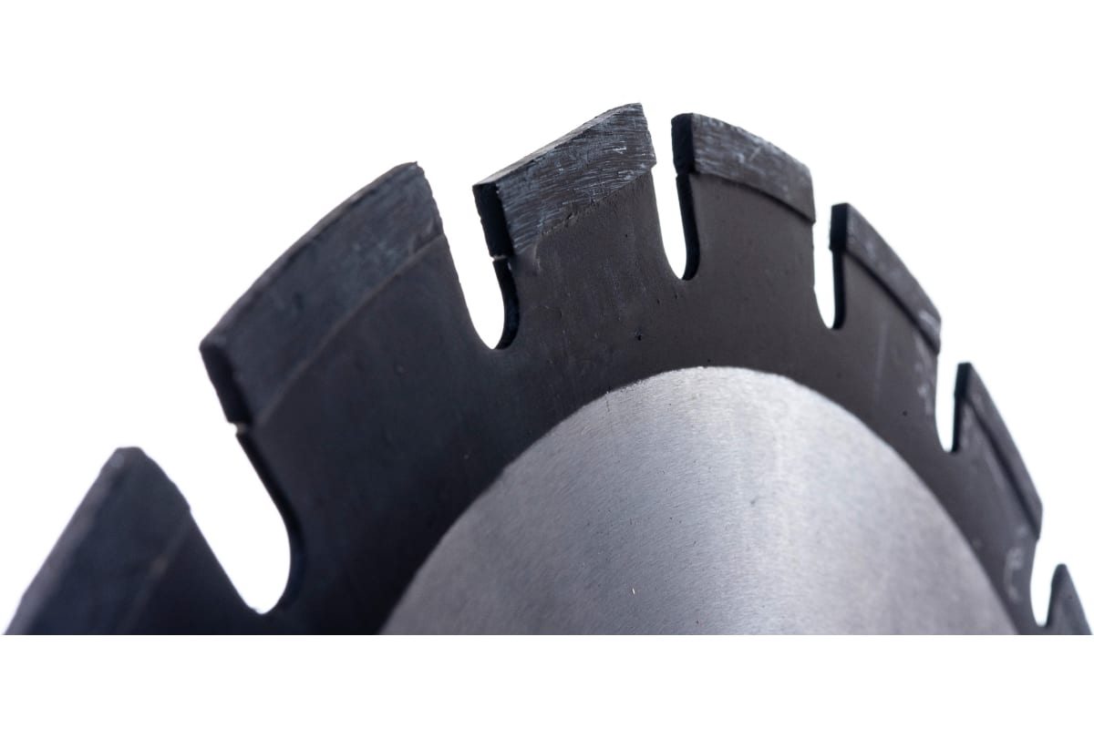 Диск произведен на связке из кобальта и карбида вольфрама. Обладает ресурсом свыше 1200 погонных метров и высокой производительностью. Для защиты корпуса диска и улучшения удаления продуктов реза, три алмазных сегмента расположены под углом к оси вращения.